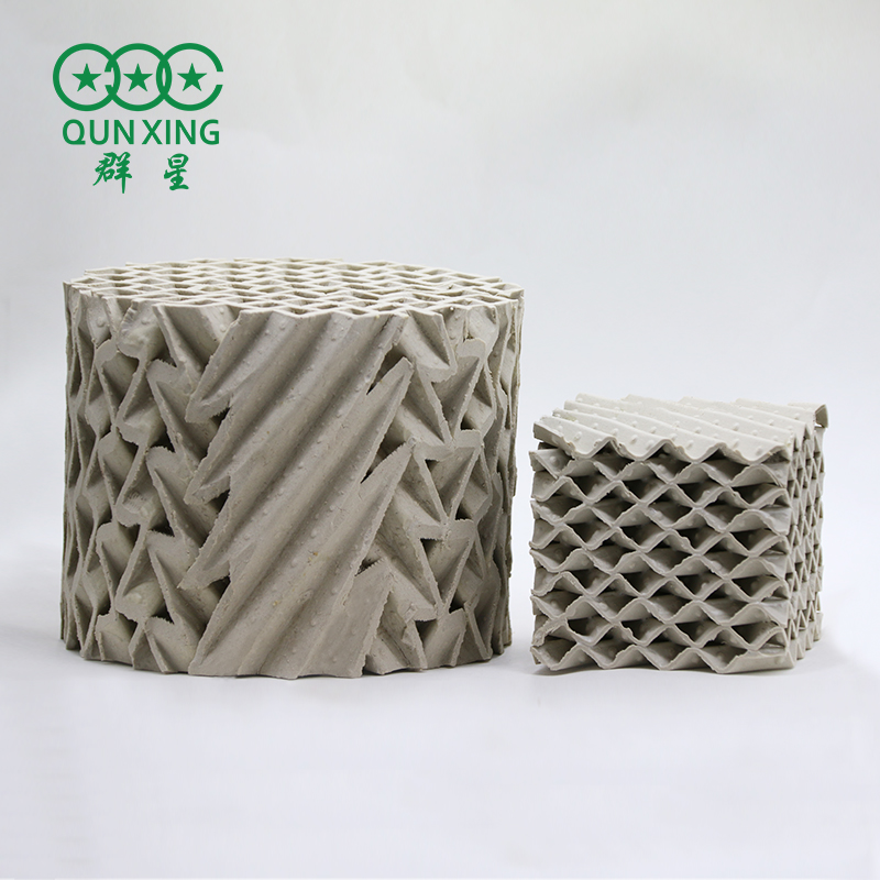 陶瓷波紋填料是一種新型規(guī)整填料,它是由許多具有相同幾何形狀的填料單元體組成。由于陶瓷的結(jié)構(gòu),具有良好的親水性能,其表面可形成極薄的液膜的湍動及氣流的傾斜曲折通道能促進(jìn)氣流但又不阻擋氣流使陶瓷填料能與金屬填料相匹敵,而其耐腐蝕、耐高溫性能金屬填料卻無法相比。表面結(jié)構(gòu)有良好的濕潤性能,能使液體加快流動、使填料滯液量降至低。從而降低了過熱、聚合和結(jié)焦的機(jī)會。